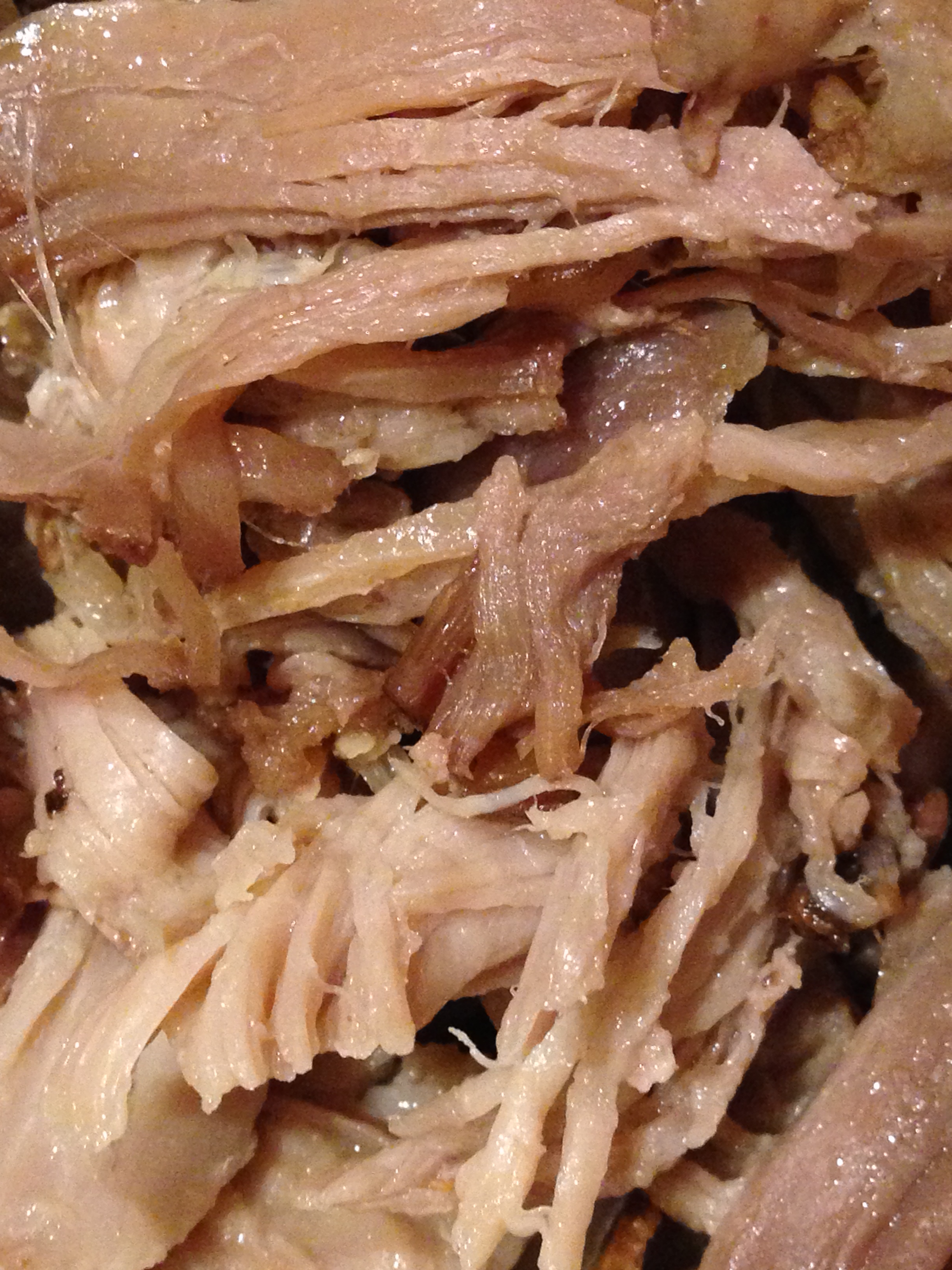 Cover the crockpot, turn on low and allow to cook for 16-20 hours. Turn once during the cooking time. Remove, shred, and place on buns. Top with desired condiments: BBQ sauce, pickles etc.