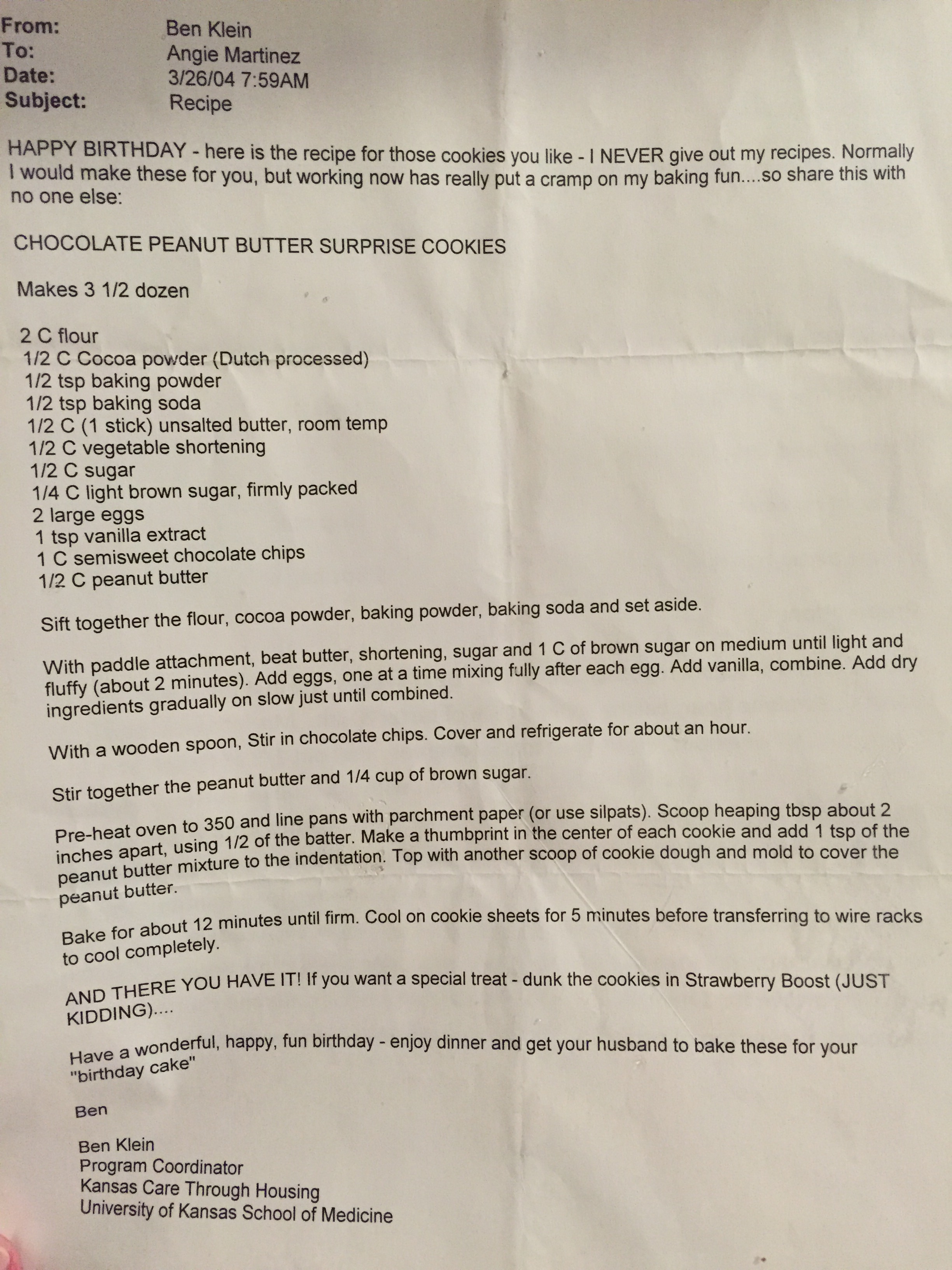 The following year, he remembered that I’d enjoyed these cookies he’d brought in during his days of volunteering, and sent me the recipe, albeit a day early, for my birthday. Later that year, when I decided to return to school to obtain my MSW, working in the medical clinic didn’t allow a flexible schedule, so Ben invited me to lunch at Da Nang (a very questionable restaurant, in which I had to routinely remind myself I was supposedly eating chicken) and suggested I come work for him as a housing case manager, and I did. That year for Christmas, I did my usual holiday baking and gifted him a bag of goodies. I remember the delighted e-mail he sent about how he so enjoyed the turtle cookies, the caramel stuck to his chin.