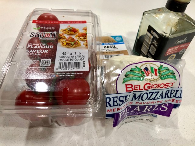 Preparation is easy. I diced up the tomatoes & seasoned them with salt & pepper. Chiffonade the basil. Combine the tomatoes, basil, & fresh mozzarella pearls. Drizzle with balsamic vinegar. Serve & enjoy!