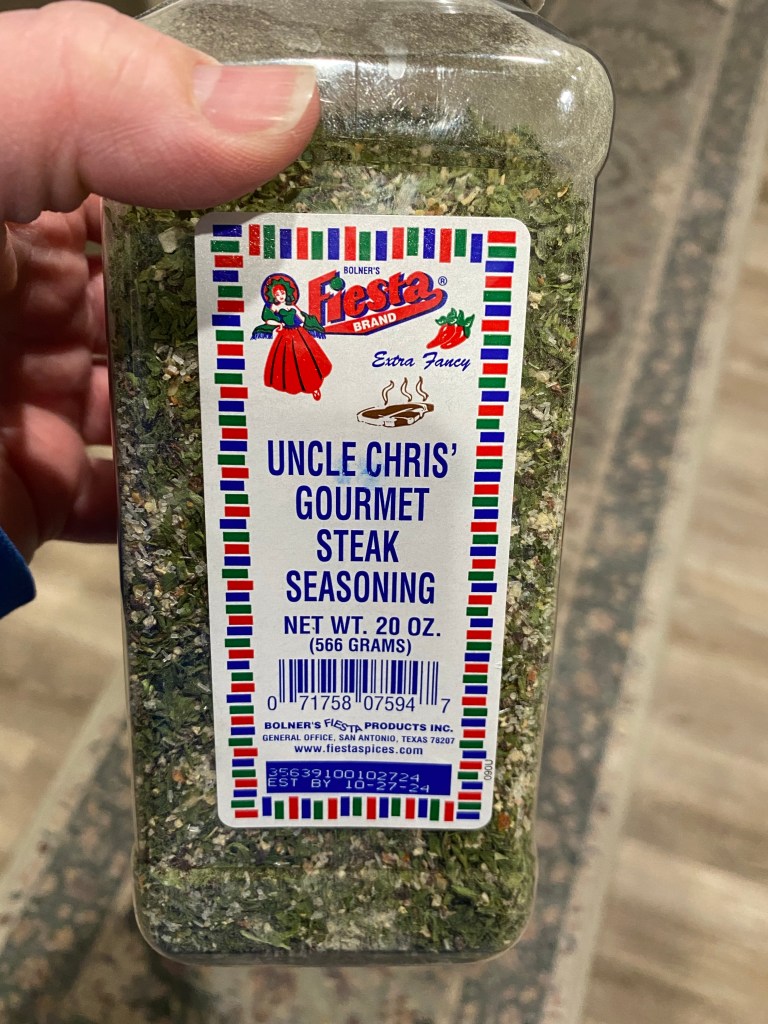 Instead of grilling, which he normally does, my husband made these burgers in a cast iron skillet. He does not shy away from using the following seasoning. For a long time, he used Montreal Steak Seasoning, which is good, but we’re on a kick of using this seasoning. He sprinkles it on before mixing it into the hamburger. He makes half lb burgers, but you do you.