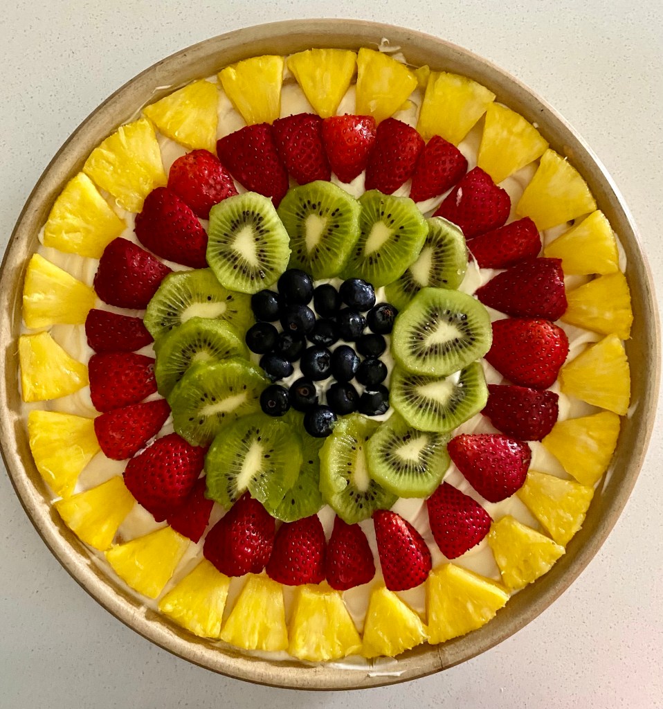 Beat the cream cheese with the vanilla extract & sugar until well combined & creamy. Spread over cooled cookie crust & assemble with fruit of your choice. Cover with plastic wrap & refrigerate until ready to serve.