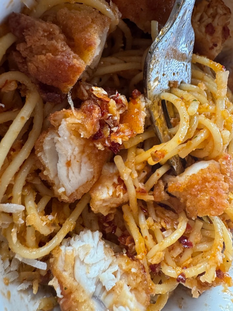 I topped mine with some chicken tenders & drizzled a bit more chili crisp to the top.
